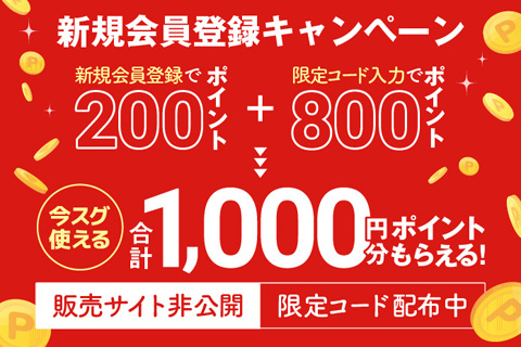 ■新規会員登録時に限定コードを入力せずに登録した場合は、通常の200Pのみ獲得となります。